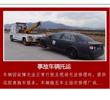 主營:汽車快速救援、交通事故救援、道路困境救援。